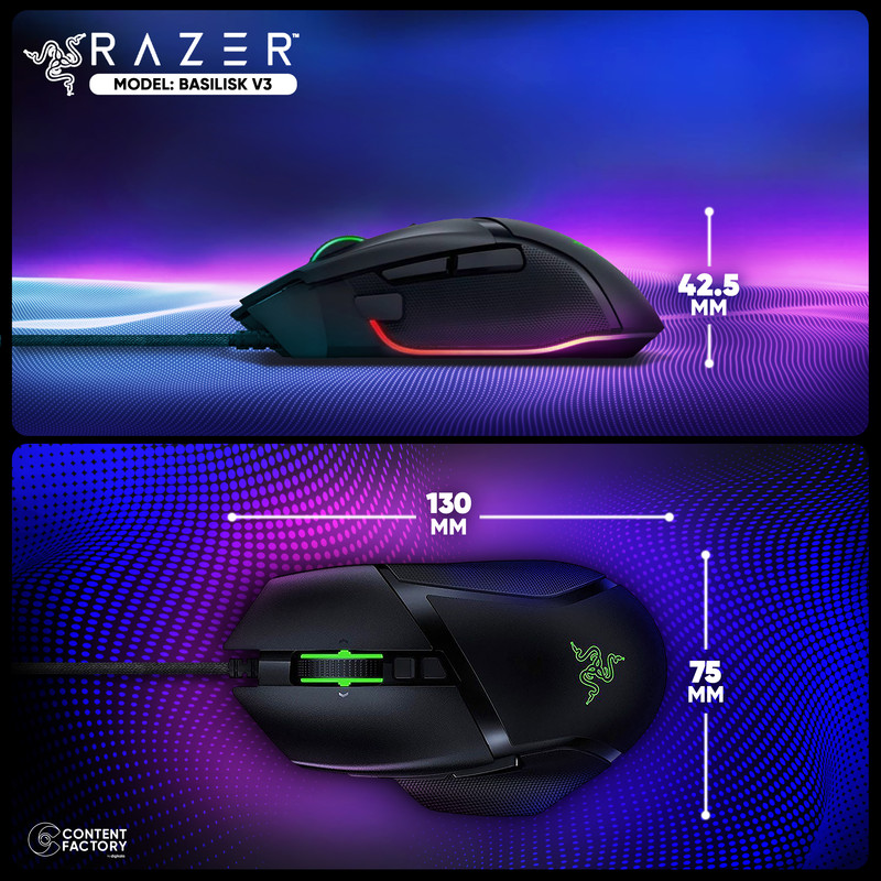 طراحان ریزر هنگام طراحی ماوس گیمینگ ریزر Basilisk V3 سنگتمام گذاشتهاند و هرآنچه که میتواند رضایت گیمر را جلب کند در این ماوس قرار دادهاند. این محصول برند ریزر از RGB پشتیبانی میکند و اتفاقاً دارای تکنولوژی اختصاصی ریزر یعنی Razer Chroma است. میتوانید با نرم افزار ریزر از بین افکتهای متعدد و البته 16.8 میلیون رنگ، حالتهای پخش نور یا RGB اختصاصی خودتان را بسازید.